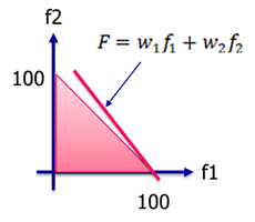 多目的最適化の解き方で真っ先に思いつくのは、各目的関数に重みを掛け、その和を新たな目的関数にすることでしょう。