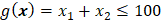 w1、w2 は定数なので、F を大きくするということは、f2 切片を大きくして赤い直線を上に平行移動するということです。赤い三角形の範囲で直線を上に移動させていくと、f1 = 100 で限界になります。