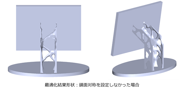 このように、左右対称な結果形状を得たい場合等、製造制約機能を使用することで、ご希望に沿った最適化形状を得られます。